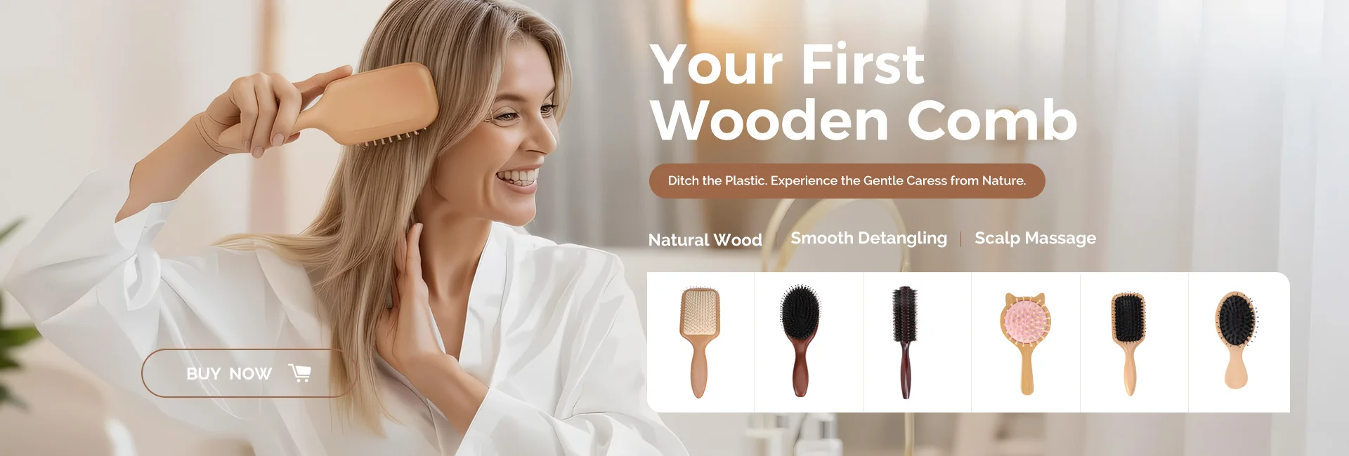 หวีไม้ไผ่แปรงหวีผมเป็นมิตรกับสิ่งแวดล้อมหวีนวดไม้พันกันง่าย